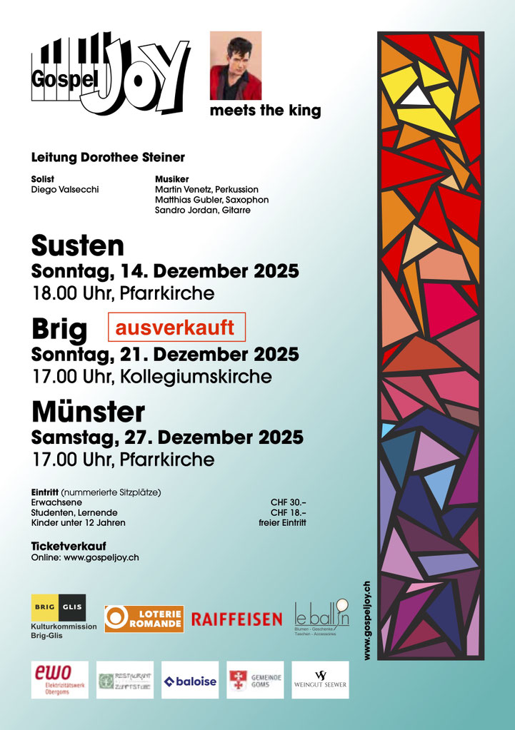 Letzte Tickets können je nach Verfügbarkeit an der Abendkasse ab 16:00 Uhr erworben werden (in Susten ab 17:00 Uhr).